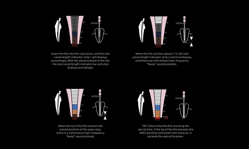 Nhờ tích hợp dữ liệu lâm sàng lớn (Big Data), thiết bị đảm bảo đo chiều dài ống tủy chính xác ngay cả khi còn máu hoặc mô tủy dư trong ống tủy.